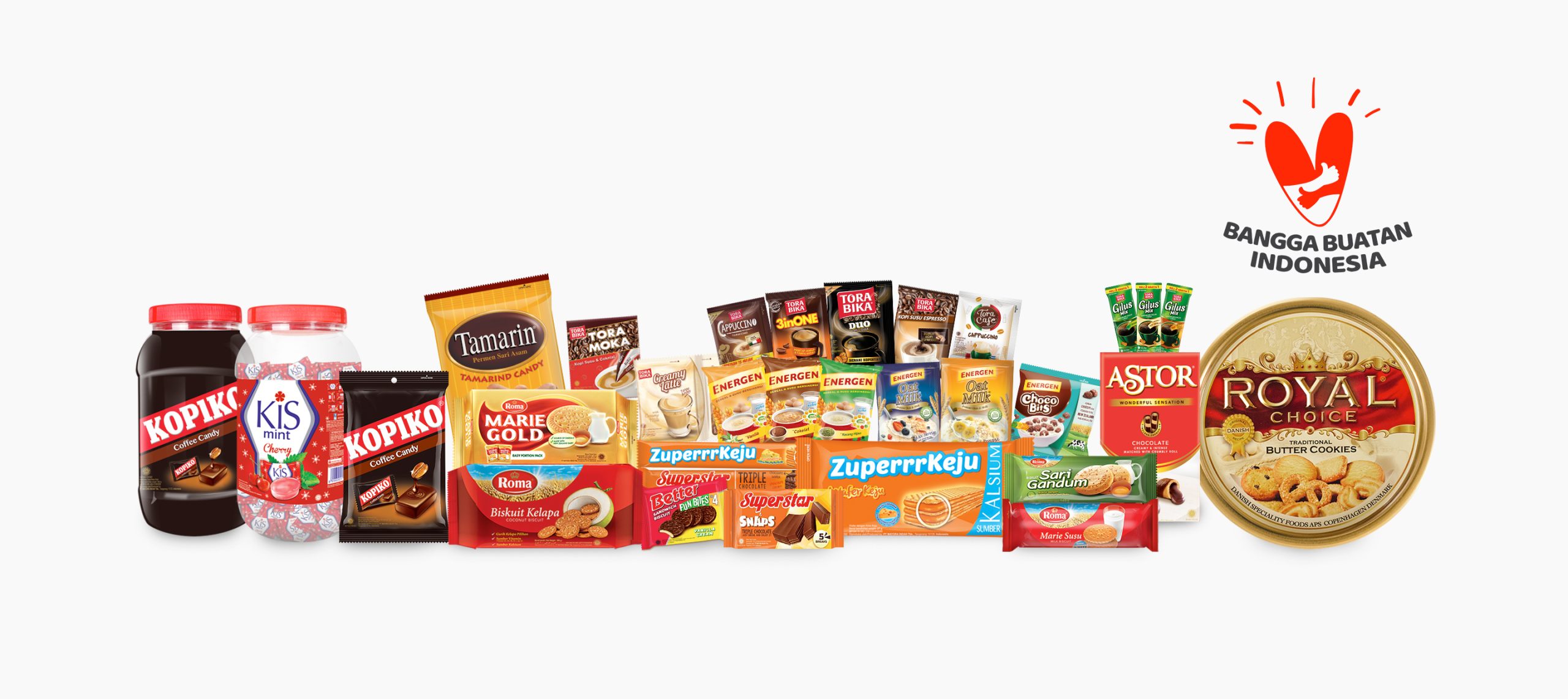 Produk yang dihasilkan oleh perusahaan ini adalah produk konsumen yang banyak ditemui dan dikonsumsi oleh masyarakat. Beberapa produk Mayora yang bisa ditemui dimasyarakat diantaranya Biskuit Roma, Better, Slai Olai, Sari Gandum, Kopi Torabika, Permen Kopiko, Permen Kiss, Permen Tamarin, Choki – choki, Beng-beng, Astor, Energen dan masih banyak lainnya.
